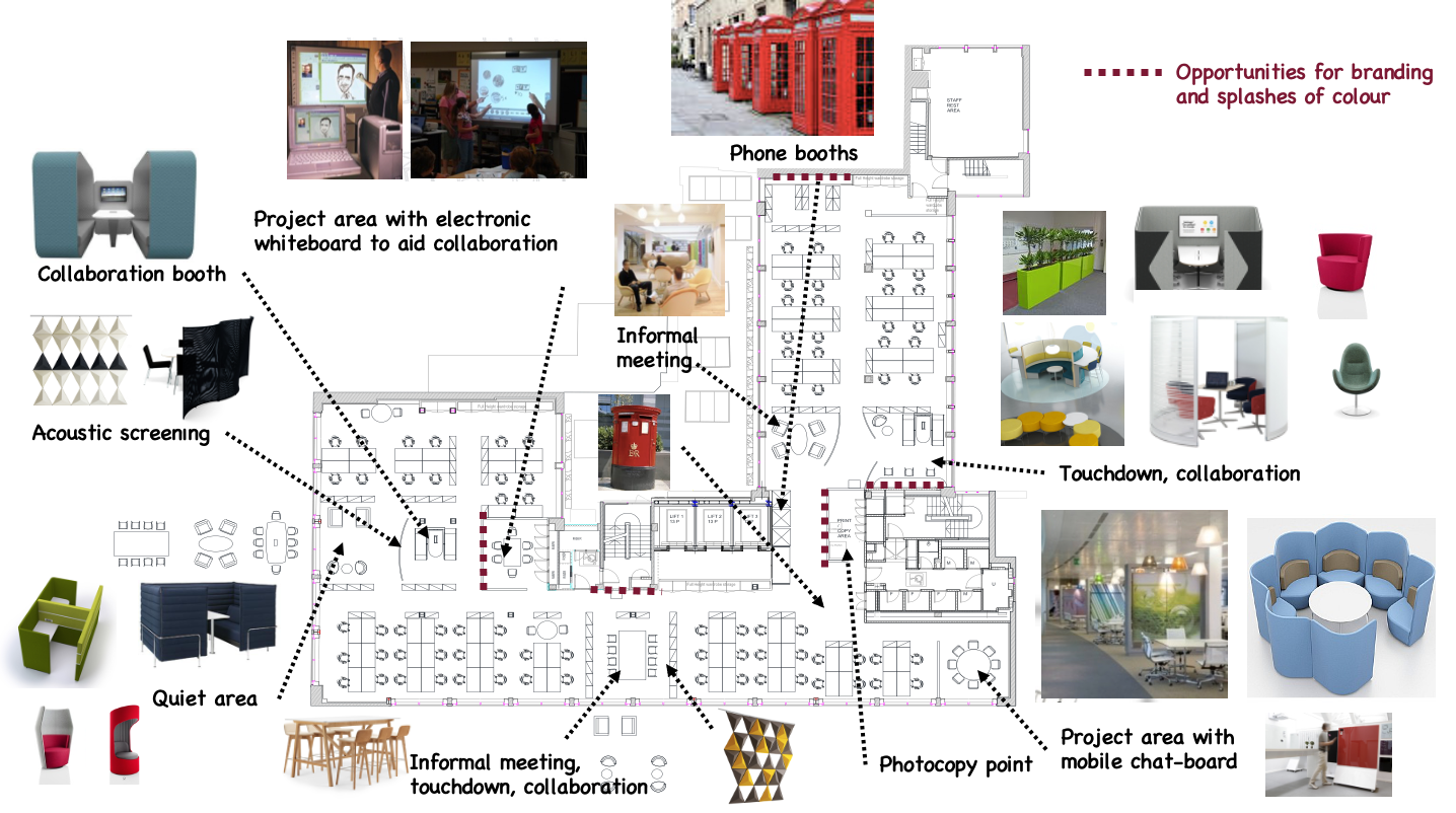 Workstream A. To understand how the facilities were being occupied a space utilisation study was carried out over a four week period, consisting of the workplace, meeting rooms, break out areas and the staff room, together with filing and storage audits. We also undertook an analysis of the floorplates to see if it was efficiently and effectively space planned.